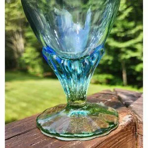Set Of 2 Bormioli Rocco Bahia Blue Green Footed Iced Tea Water Goblets 7 3/8"