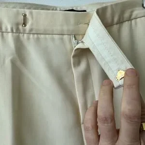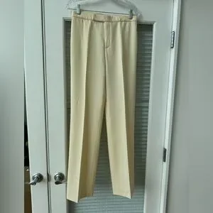 Classic Ralph Lauren trousers in a cream shade. Straight-leg silhouette with a clean front. Smooth fabric with subtle drape. Versatile for dress or office wear.
