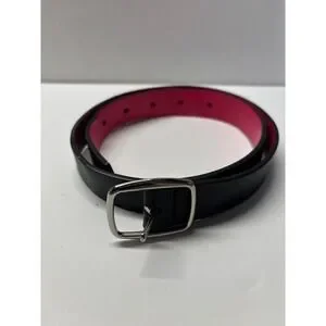 This is a black belt with hot pink on the inside and silver hardware. It is gently used smoke free pet friendly home. It is just under 1 inch wide and it measures roughly 30 inches long overall great shape sold as is