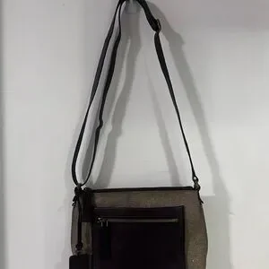 Fossil Brown Leather and Metallic Gold Crossbody Bag and Matching Wallet