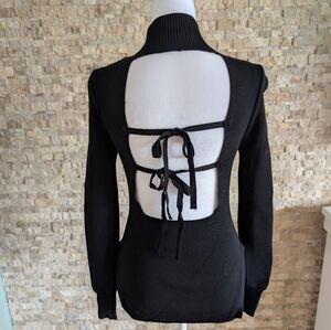 Goth Punk Aesthetic Alt Fashion Black Ribbed Knit Backless Long Sleeve Edgy Sweater Top in Size Small