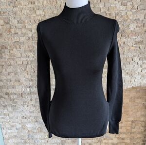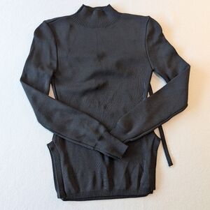 Black Ribbed Knit Backless Alt Fashion Long Sleeve Edgy Goth Sweater Top Size S