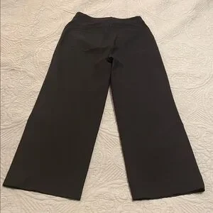 Classic wide leg dress pants in solid black. Smooth front with belt loops and a tailored waist. Versatile for work or dressy occasions. Easy to style with blouses or blazers.