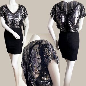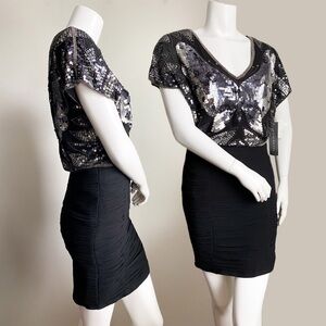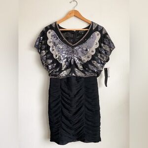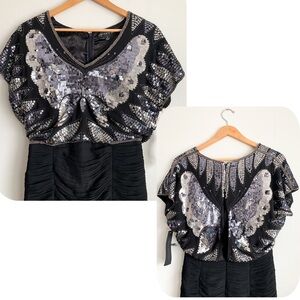 AIDAN MATTOX Sequin Beaded Butterfly Disco Formal Dress Cocktail Glam Wedding 2