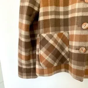 Vintage Wool Lined Plaid Tartan Brown Button Shacket