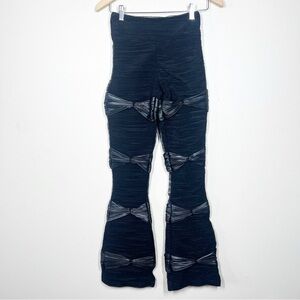 Maniere De Voir Womens Black Mesh Overlay Flare Pants Gothic Goth Grunge