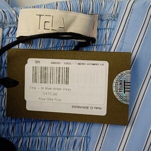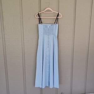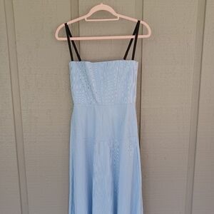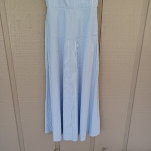 Tela Bahamas Maxi Dress Size S Women Preppy Cotton Pockets Smocked Blue Striped