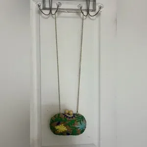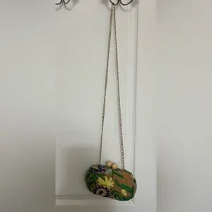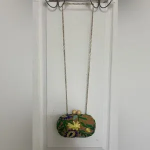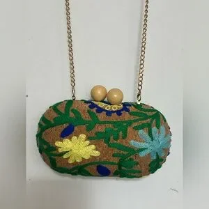 Embroidered Floral Cork Crossbody/Clutch Bag in Brown and Green