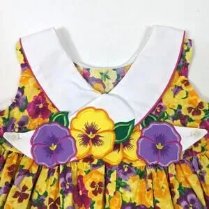 Vintage Austin & Ashley absolutely adorable all over pansy printed sundress with a very unique applique collar. Size 4R