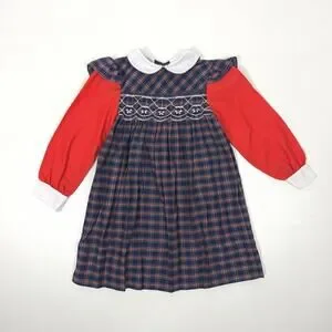 Vintage Princess Anne sweet navy and red smocked plaid dress. Size is tagged as 6, but looks to fit like 4T. Please check the measurements provided.