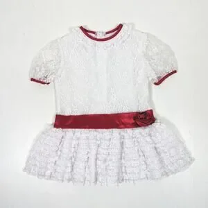Vintage Ribbons & Lace Dress Girls Size 18m White Lace Christmas Holiday