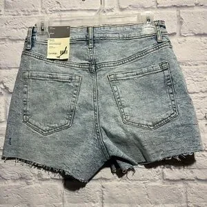 Trendy light blue jean shorts by George. Features frayed hem and classic five-pocket style. New with tags, slight colour flaw on back. Make me an offer or bundle any three qualifying items and I’ll offer 3 for $15!