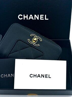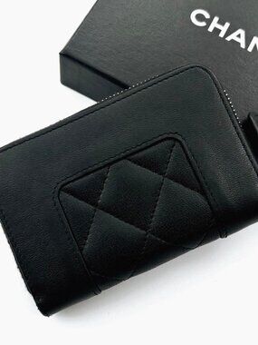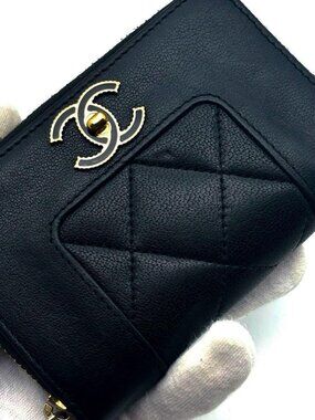 Chanel Mademoiselle Round Zip Coin Purse Card Case Business Card Holder Wallet