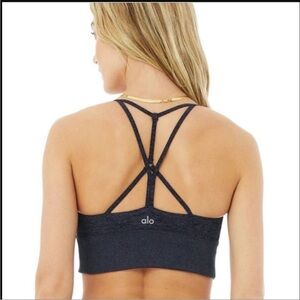 Alo Yoga Alosoft Lavish Sports Bra in Athletic Heather navy blue Size Medium