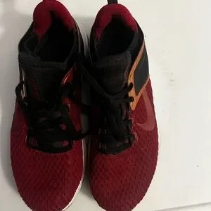 Dynamic Nike athletic shoes. Red upper with black and orange details. Designed for comfort and performance. Preowned no tears