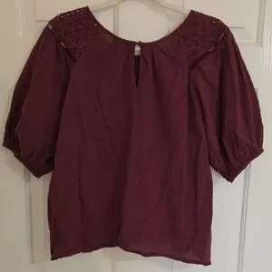 Enfocus Studio Plum Eyelet Yoke Puff Sleeve Blouse