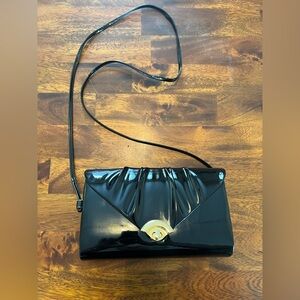 Vintage-Inspired Black Patent Shoulder Bag
