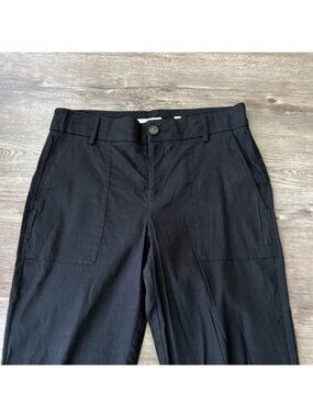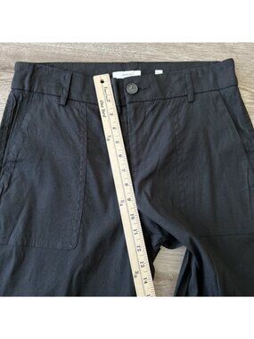 Vince Linen Blend Cropped Utility Pant Womens 8 Black High Waist //