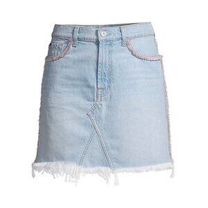 NWT 7 For All Mankind skirt w/ rainbow fringe in sky high blue
