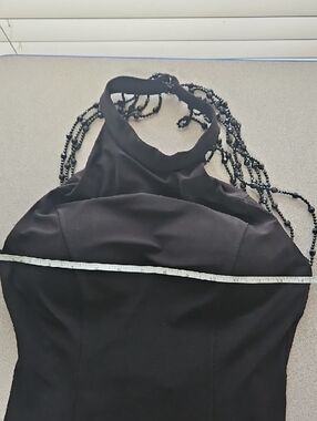 Elegant halter-style maxi by Jump. High neckline with subtle gathered back detail. Flows into a long, streamlined skirt. Simple and chic for evening wear.