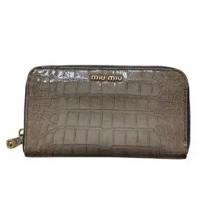 Miu Miu Crocodile Wallet Womens Embossed Leather Zip Around Gray Gold Luxury
