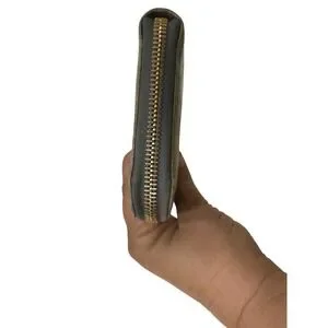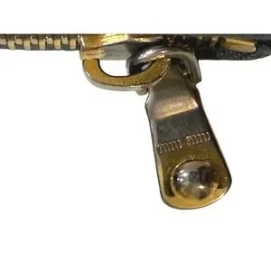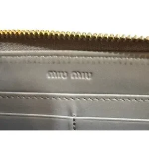 Sophistication unfolds with this Miu Miu zip-around wallet, a testament to luxurious craftsmanship. The rich brown exterior, beautifully embossed with a crocodile-like texture, offers a tactile delight and a touch of exotic elegance. Gleaming gold-tone hardware, including the signature Miu Miu zipper pull, adds a refined accent, hinting at the meticulous attention to detail. Open it to reveal a thoughtfully organized interior, designed to keep your essentials secure and accessible.