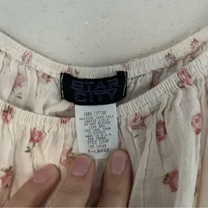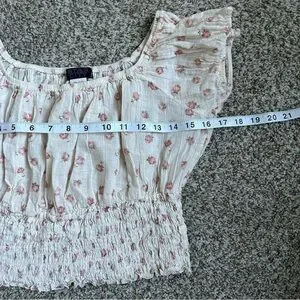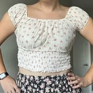 Star City Vintage Cream Floral Off the Shoulder Puff Sleeve Crop Top Large Boho
