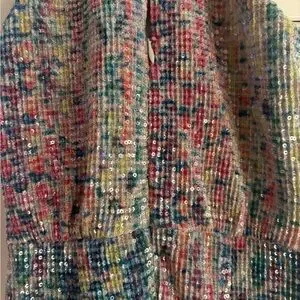 Sparkling multicolor sequin halter. Halter neckline with sleeveless style. Eye-catching shimmer for evening wear.