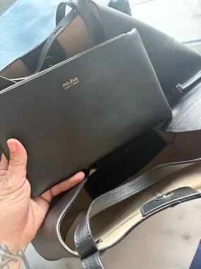 Wore 2x and fell on the bag has a scuff but it’s on the back of the bag (pic included). Comes with box, tag still attached, card holder, and receipt.