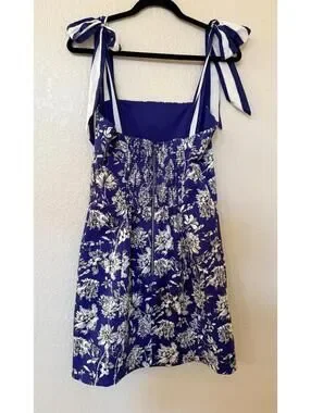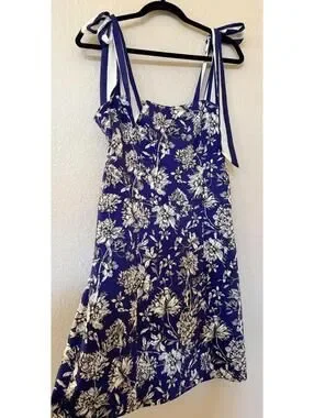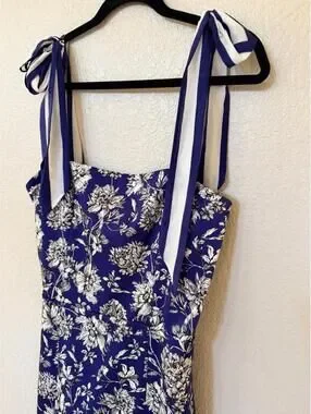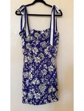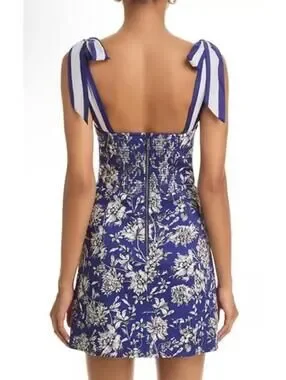 New Alice and Olivia Maryann Floral Tie Shoulder Dress Indigo Multi Sz 10 $440