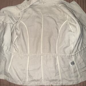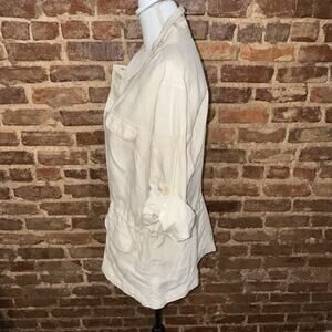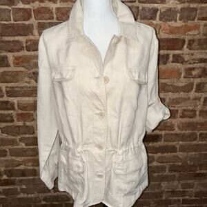100% Linen Safari Shirt/jacket Utility Coastal Drawstring Waist Roll Tab L EUC