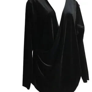 Sundance Womens XXL Black Velvet Wrap Front V-Neck Long Sleeve Blouse Top