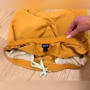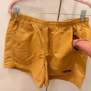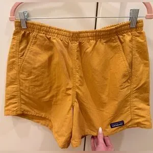Never worn, perfect condition!! Patagonia women’s funhoggers shorts w/ 4” inseam in “raptor brown”, which is a mustard yellow-brown color. Size medium (US 4-6).
