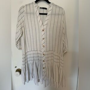 Zara Cream and Blue Striped Button-Front Tunic