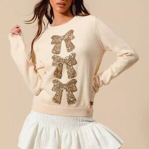 SO ME Sequins Bow Ribbon Embellished Christmas Sweater