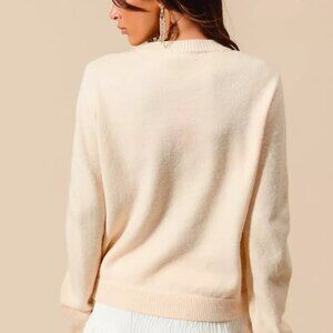 *This Christmas sweater is embellished with sparkly sequins and a charming bow ribbon for a festive and eye-catching look. The sequins add a touch of glamour and shimmer to the design. Perfect for holiday celebrations, this sweater is sure to spread cheer and merry vibes. The bow ribbon detail brings a playful and whimsical element to the sweater. Embrace the holiday spirit in style with this embellished Christmas sweater.