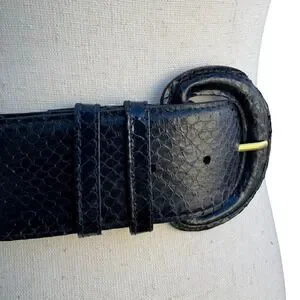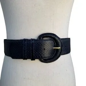 Saks Fifth Avenue Navy Blue Genuine Snakeskin Wide Waist Belt Size M Vintage