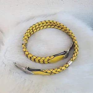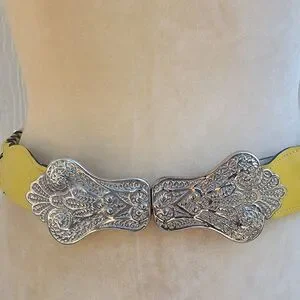 Avignon triple strand leather belt Wide Silver Buckle wmns sz sm yellow