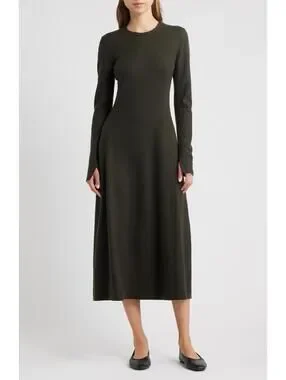 New Rag & Bone Yan Long Sleeve Wool Sweater Dress in Army Size 8