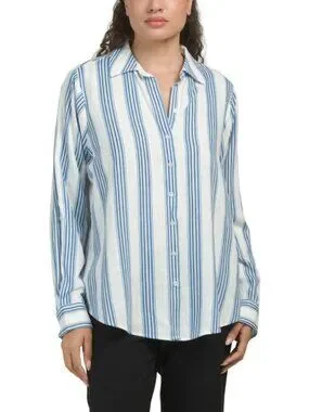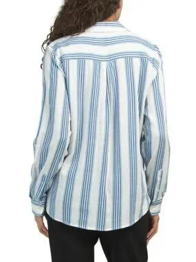 TAMARA H NAVY Linen Blend Striped Long Sleeve Shirt