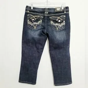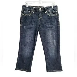 Hydraulic Womens Capri Jeans 9/10 Dark Wash Stretch Bootcut Cropped Distressed