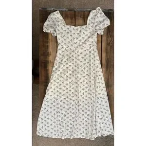NWT RIHOAS Floral Tie Front Puff Sleeve Midi Dress Cream Purple Cottagecore