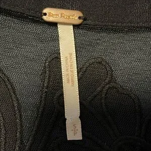 Delicate sheer yoke with embroidered floral applique. Tie-neck detail for a soft finish. Sleeveless silhouette with lightweight drape.