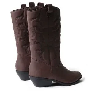 Stylish brown western boots with decorative embroidery and a pointed toe. Comfortable stacked heel for easy all-day wear. Easy pull-on tabs and durable construction for reliable use. Pairs well with skirts, jeans, and dresses for a classic western look.