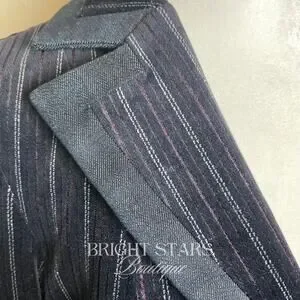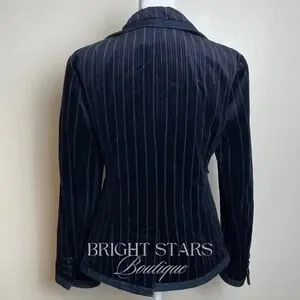 Velvet, Velour, Pinstripe, Fitted, Blazer, Jacket, Smart, Career, HTF, Hard To Find, Rarem Navy, Classic,
