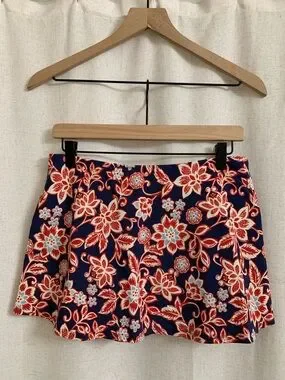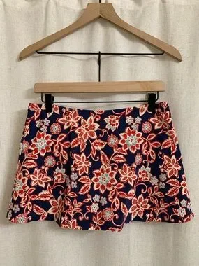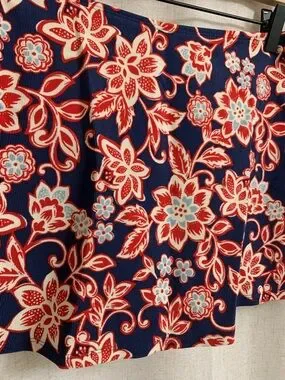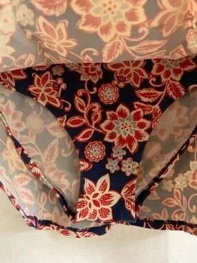 L.L. Bean UPF 50+ Floral Red White Blue Shaping Swim Skirt With Bikini Bottom 12