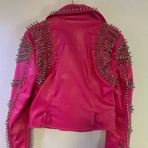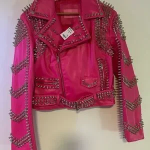 AKIRA Hot Pink Studded Leather Moto Jacket S
