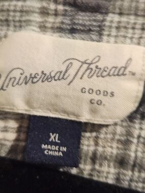 Universal Thread Plaid Button-Front Henley in Cream and Gray XL Euc