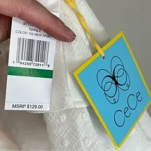 New with tags. CeCe white one-shoulder ruffle pin dot mini dress, Large