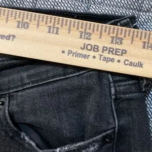 Old Navy women's skinny jeans in black. Distressed knee detail for an edgy touch. Stretch denim for a snug fit. Raw hem finish for casual style.